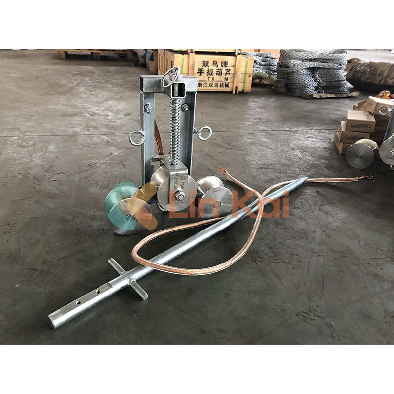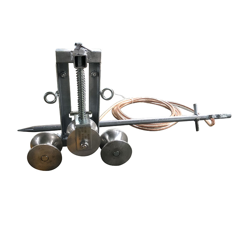 Odolné uzemňovacie bloky vodiča môžu pri uvoľnení vodičov znížiť indukované napätie vo vodiči a uzemňovacom drôte. Sú pripevnené na výstupnej strane napínačov alebo na vstupnej strane sťahovákov a ťahané dvomi vzpernými lankami. Systém trojitej kladky sa automaticky stlačí. Maximálny povolený prúd je 100A a čas elektrifikácie je 0,1 sekundy. Navrhujeme, aby protiľahlý vodič mal prierez 25 mm2.